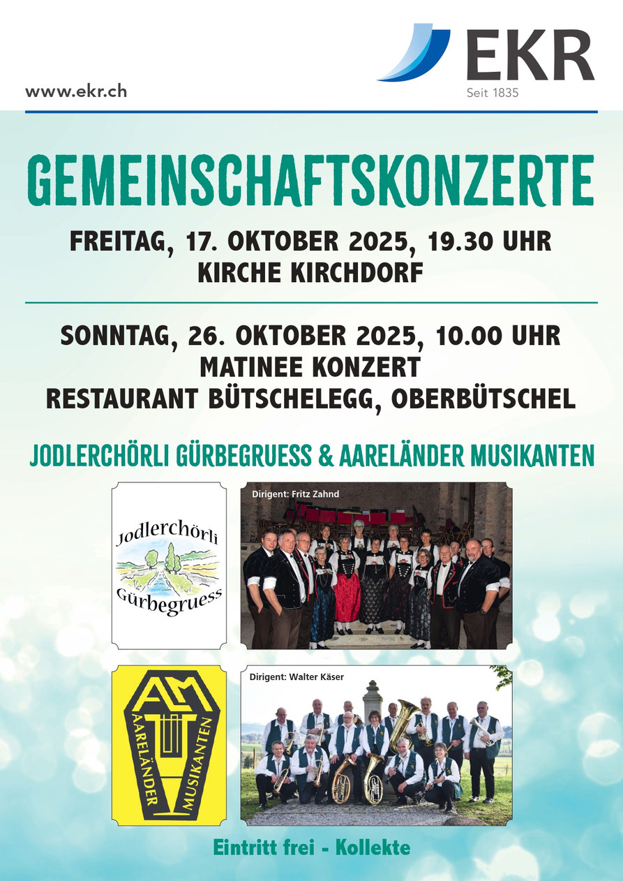 Fr 17.10. 19.30 Kirche Kirchdorf Gemeinsch.konzert mit Jodelchörli Gürbegruess